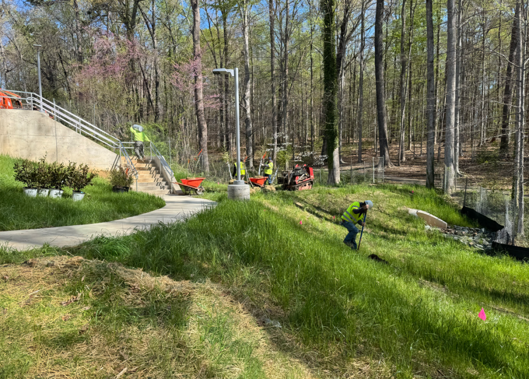 We planted around rain events this week at the brand new Fire Station along the 29 Bypass here in Charlottesville. We worked with Water Street Studios (Architect), Nielsen Construction (General Contractor), & Vess Excavating (Excavator) to bring this native plant design into reality. We will be back in a month to plant the Biofiler located behind the new facility.
